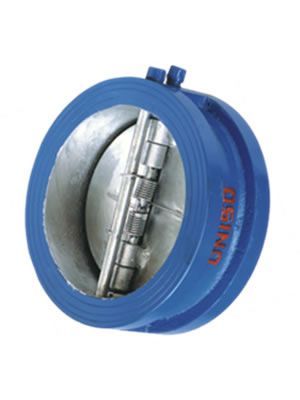 本廠生產(chǎn)的H76X型對夾式止回閥由閥體、閥瓣、閥桿及彈簧等零件組成,采用對夾連接。由于閥瓣的關(guān)閉行程短,并且有彈簧加載,可顯著減少水錘現(xiàn)象。該閥主要適用于城市、工業(yè)及高層建筑給水、排水管網(wǎng)上。由于其結(jié)構(gòu)長度比一般止回閥短,對有安裝空間限制的場所適用。